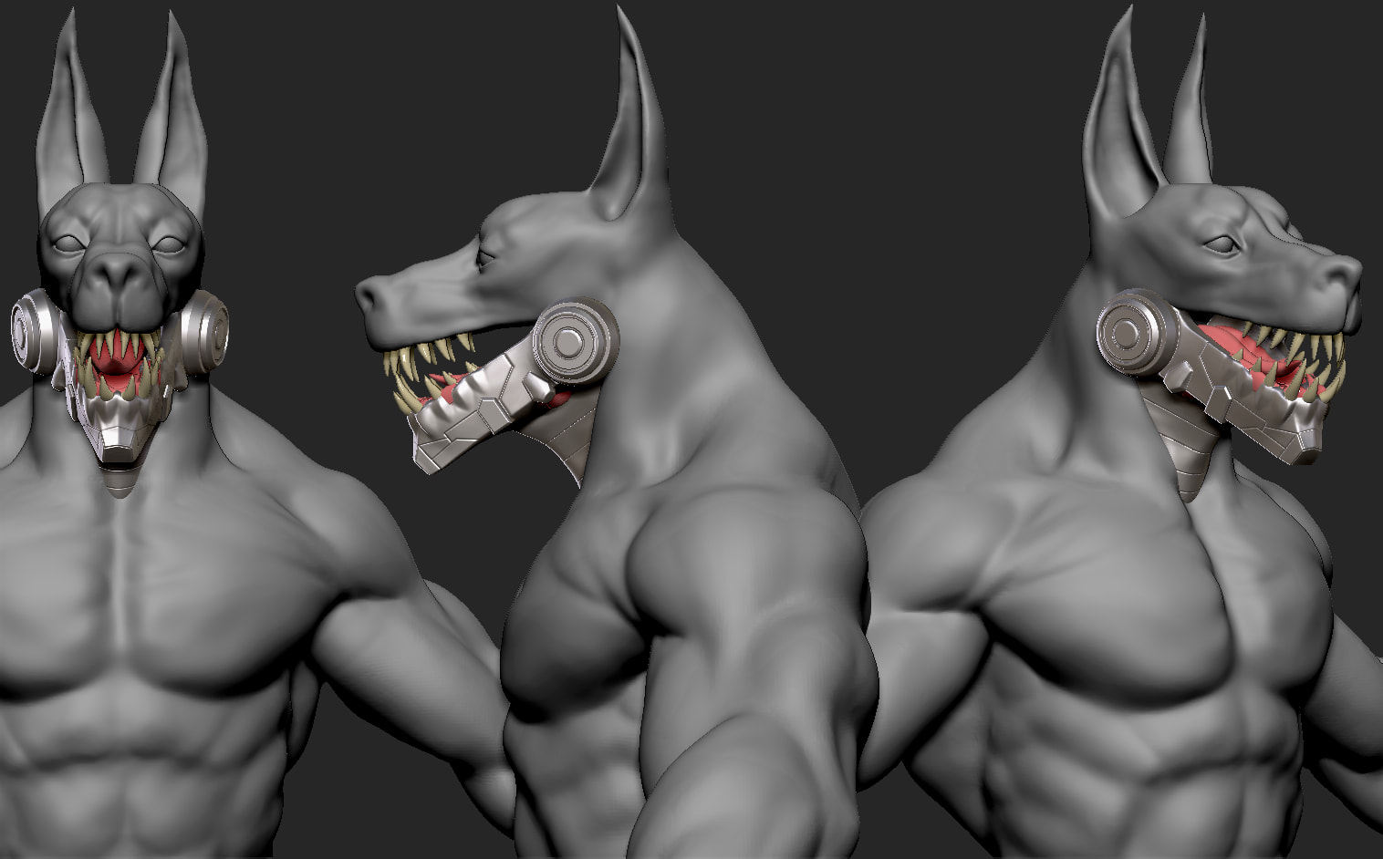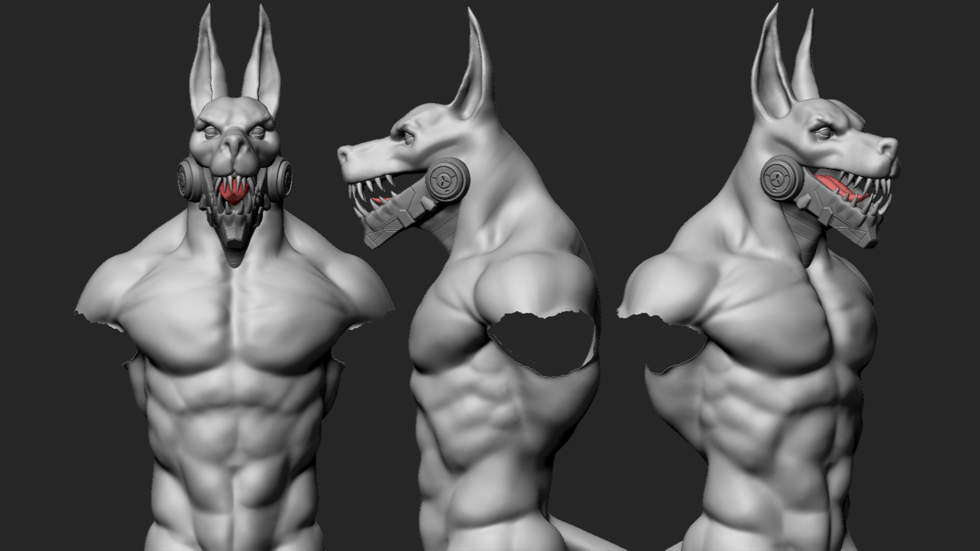 Today I spent my time making minor tweaks to the body and started on getting the head where it should be at the blockout stage, the hard surface jaw got sculpted, lost a bit of history on the circular piece, but that is alright, it was not much, got everything in the timelapse