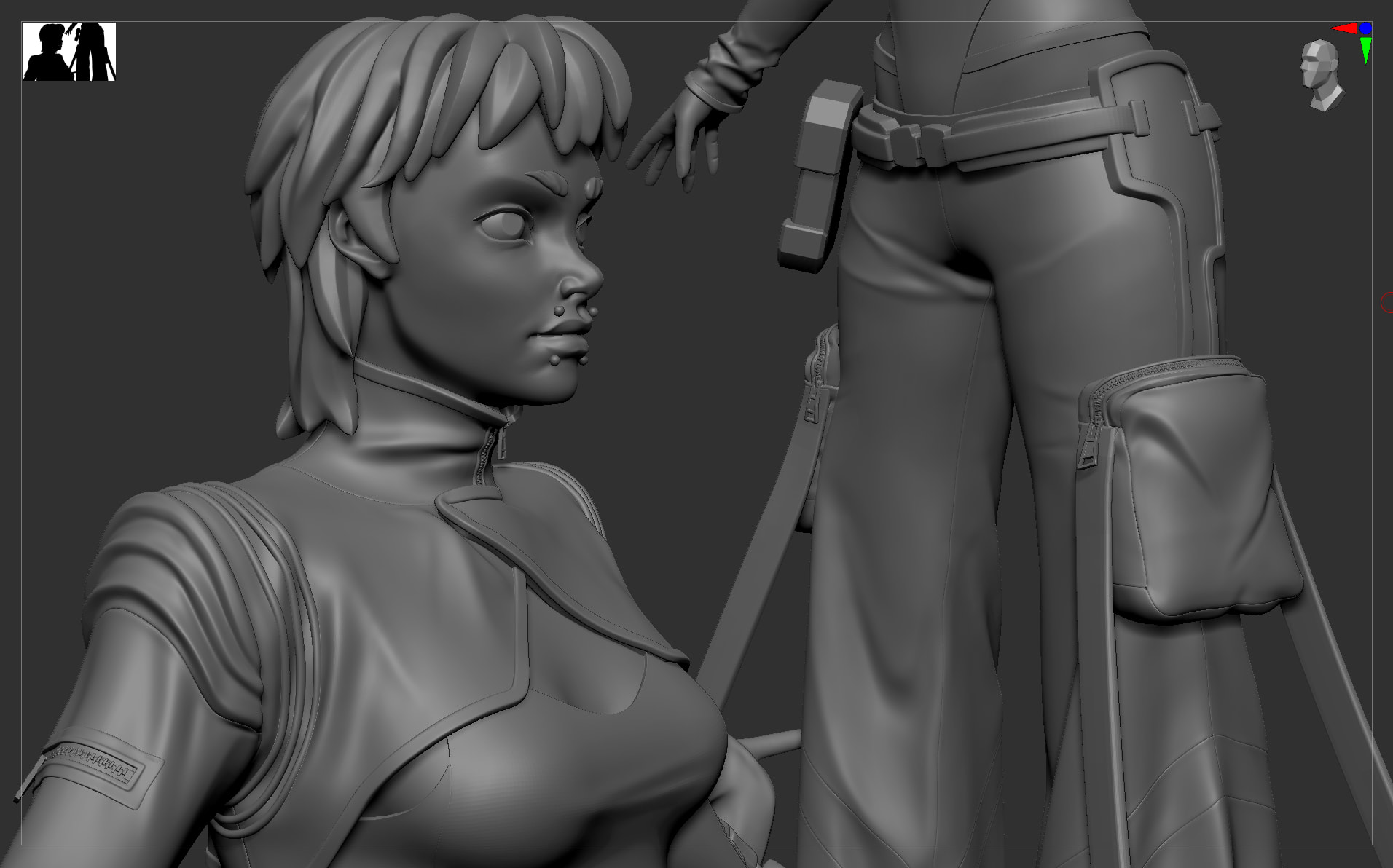 Update on the sculpt so far. Did some polish on the face and swapped out the jacket as I didn’t like the silhouette - aiming for something with big shoulders now.