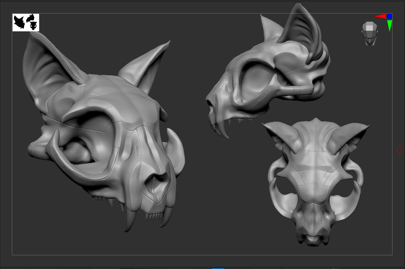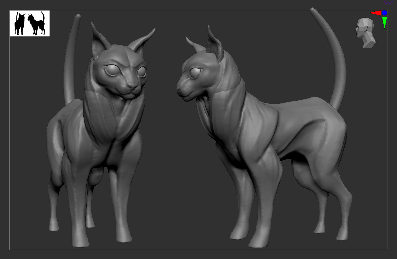 Roughed in the cat today in ZBrush. The idea is the cat body will be a semi-transparent hologram and the skeleton will be solid metal ‘floating’ inside the hologram. Keeping the cat itself pretty simple as it’ll mostly just be covered by the shader.