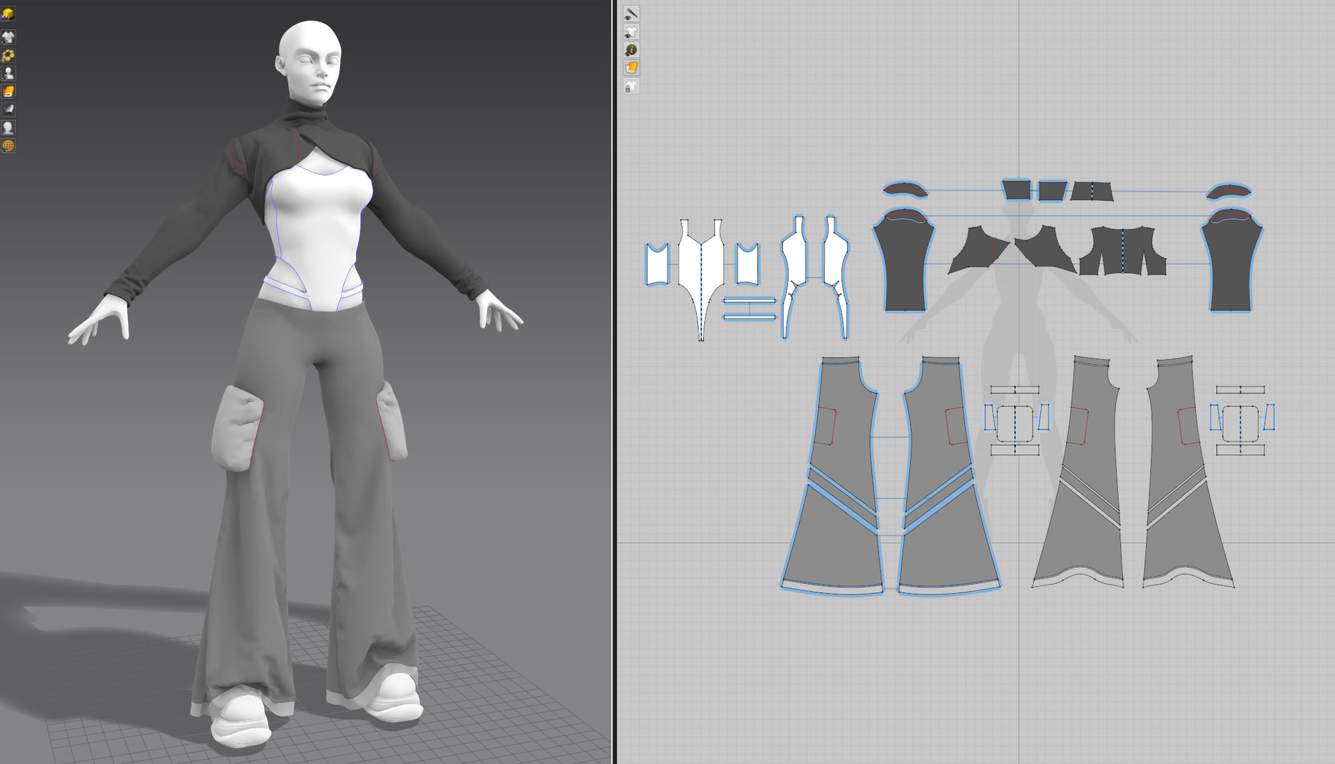 Used the flipped normals tutorial - as I usually do - to retopo the flat patterns and wrap to the finished garment before bringing into ZBrush for some sculpting.