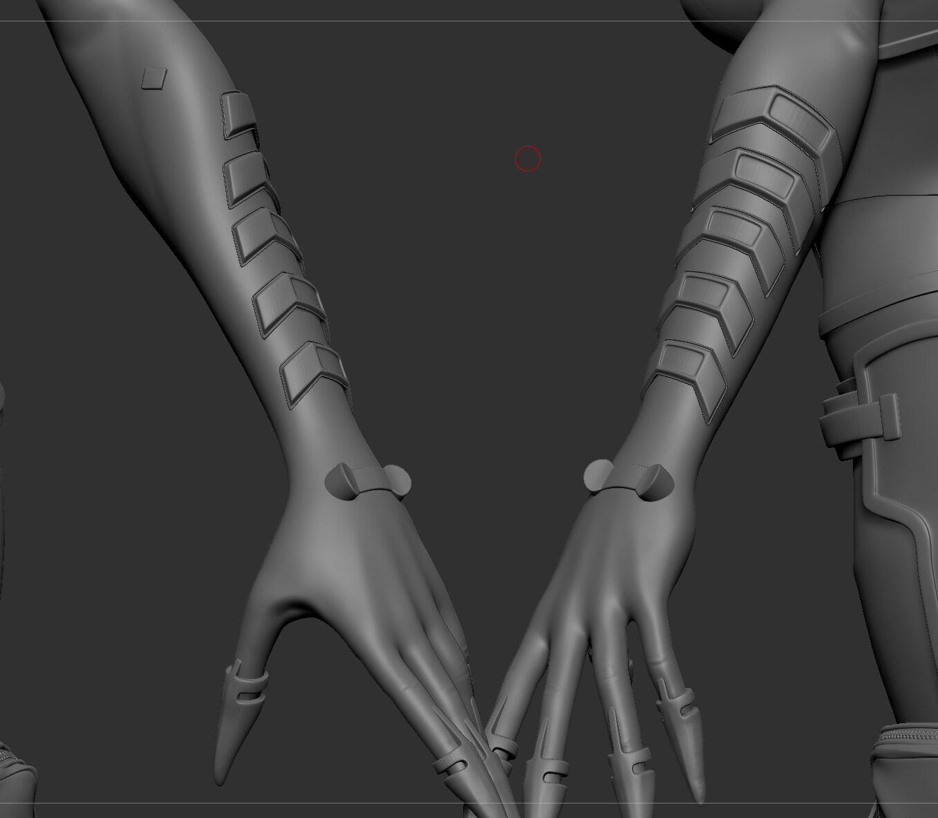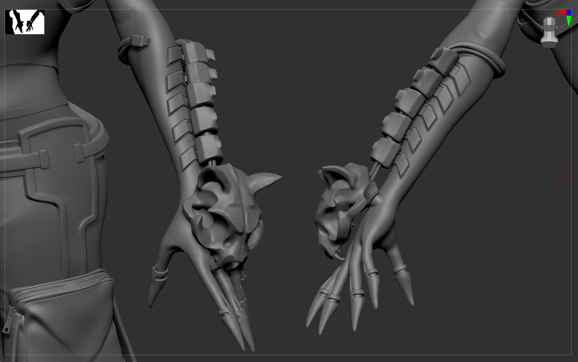 I have a question though: don’t you think the tail is too close to the elbow joint? It might get in the way when bending the arm and dig into the geo.