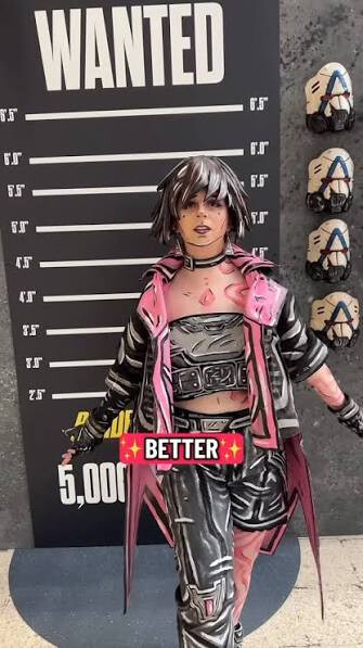 If they’re meant to be a baddies too, then a wanted poster in the background like this cosplay could also suit really well with this type of shot angle/pose you have!