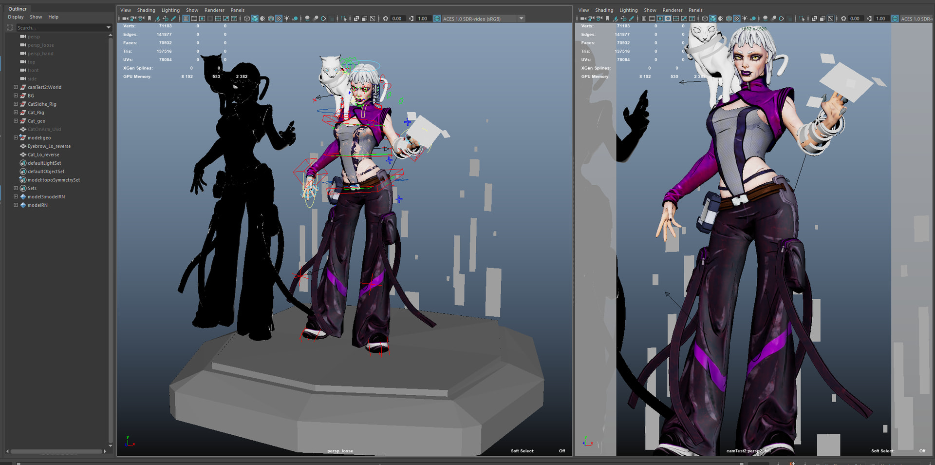 This is the setup in maya with the ‘outline’ mesh a separate entity I’m still under the 150k