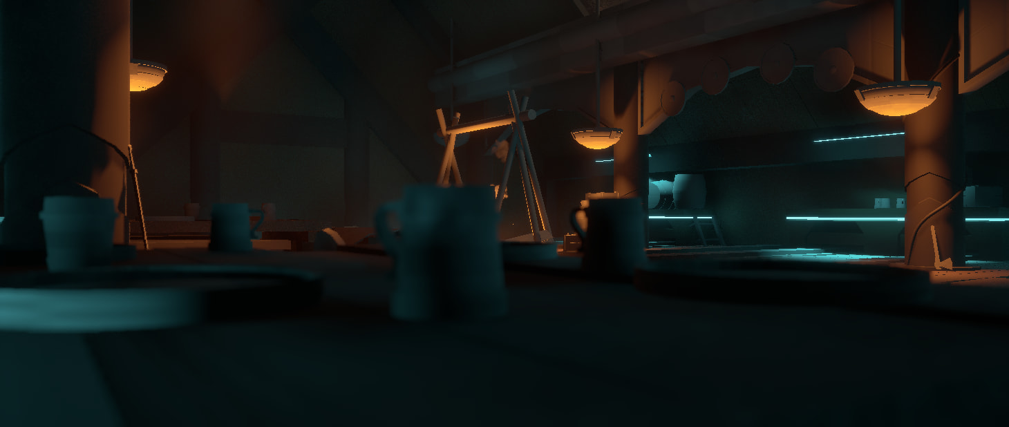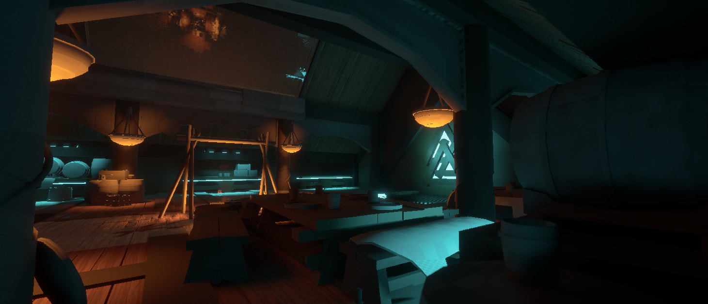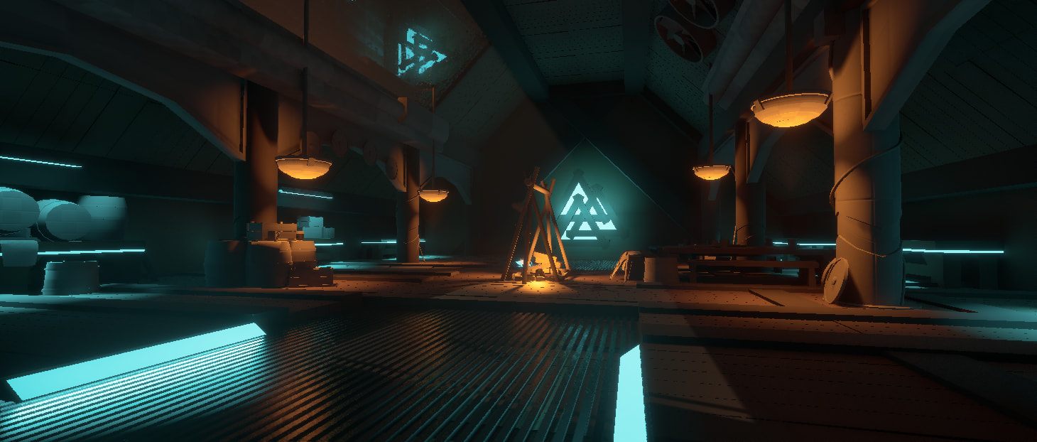 Ive decided to heavly focus more on the Norse asthetic and then adding small bits of sci fi elements. Such as vents, neon lights, metal grates ect.