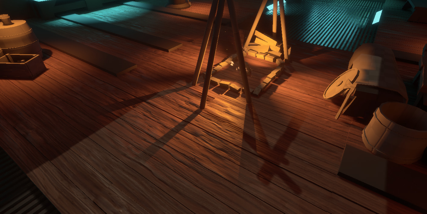 Week 3 sprint allowed me to change the centre focus to a more nordic style open hearth and start populating the scene with props. Im focusing on the “Viking” parts of the scene first and then implementing the sci fi elements.