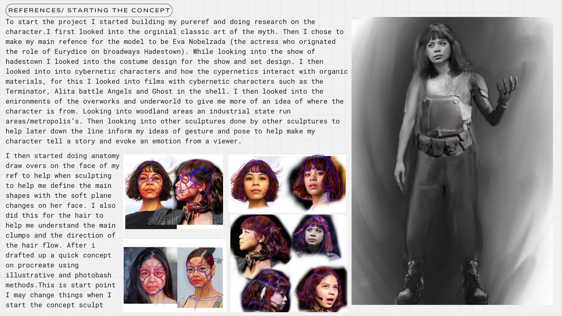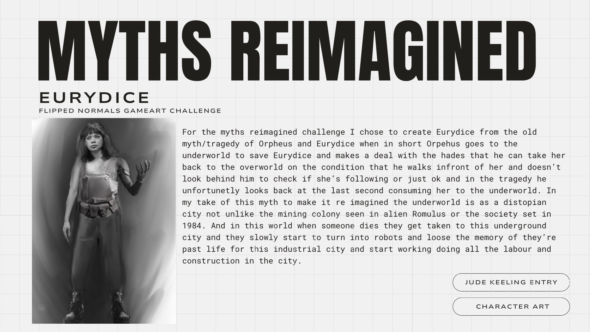For the Myths Reimagined character chalenge I decided to create Eurydice from the tale of Orpheus and Eurydice. Have a look at my WIP document i have attached.