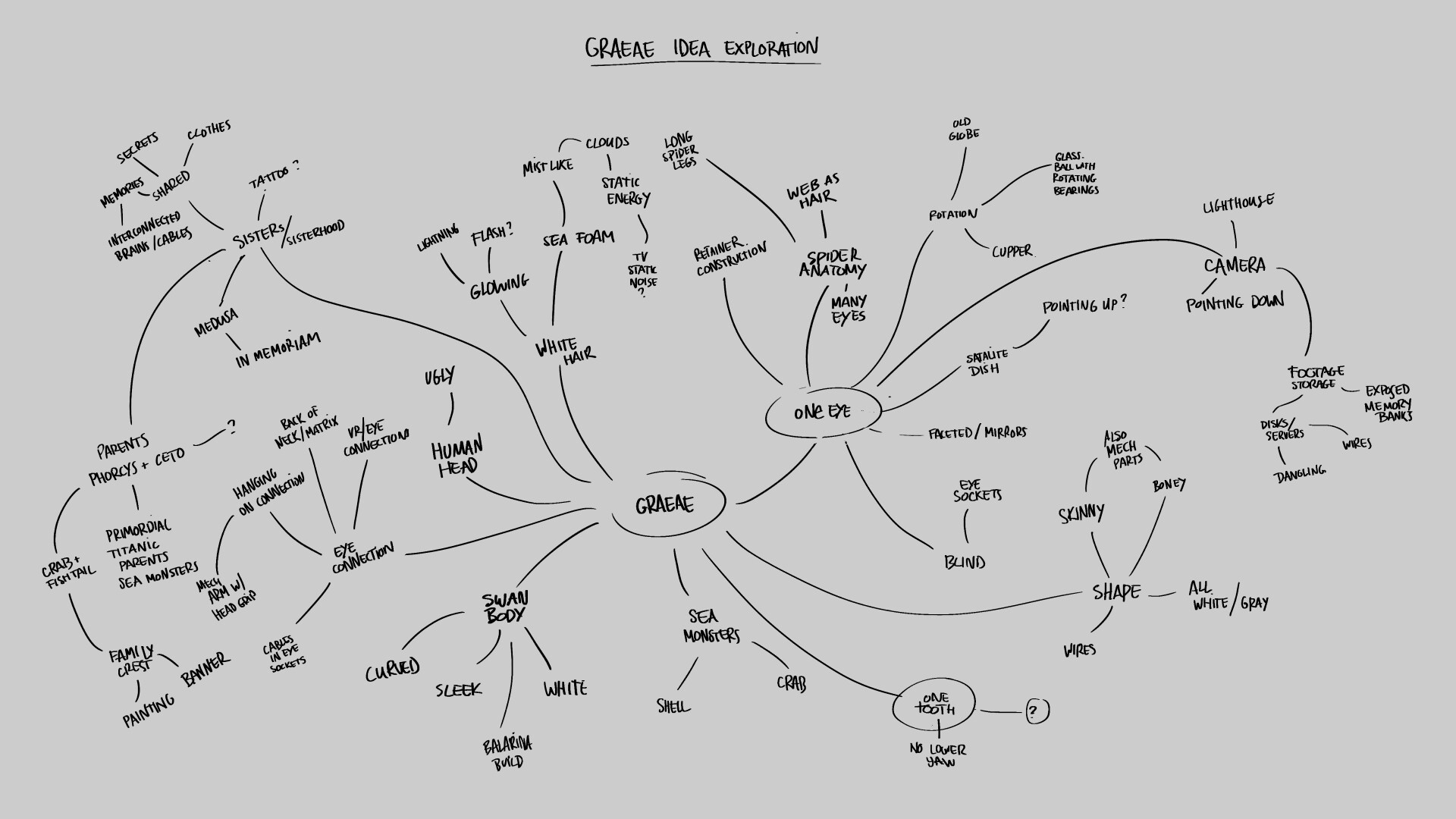 The Graeae are described as ageless, deathless, and divine beings, and it’s easy to imagine them still existing in a sci-fi future. As keepers of forbidden knowledge and foresight, the sisters might function as a watchful ‘big brother,’ monitoring everyone. One of their eyes has been upgraded and enhanced with neural links to the collective.