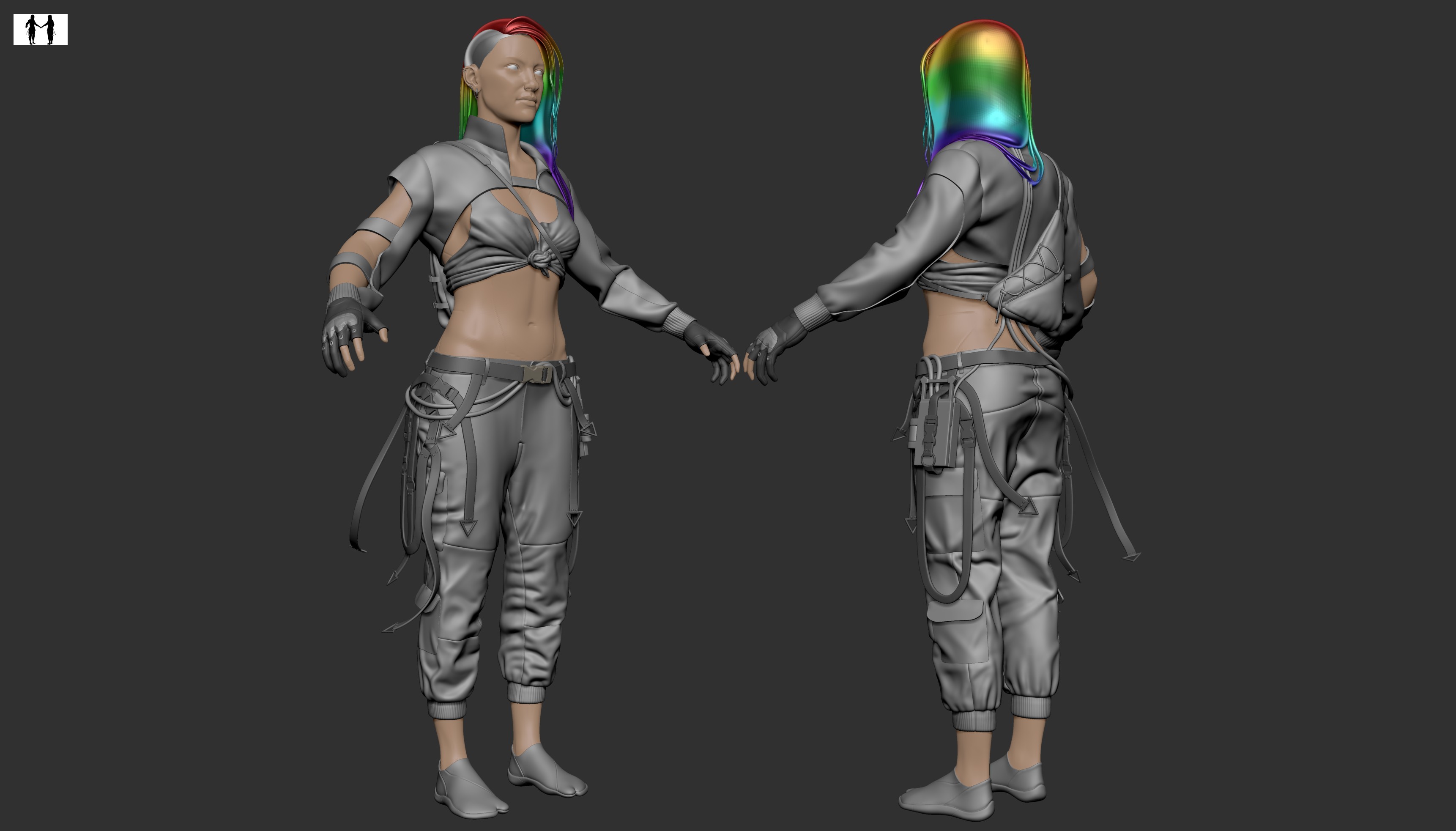 Generally looking at the Cyberpunk universe for the main aesthetic basis, with some inspiration from Mirror’s Edge and more general techwear fashion.