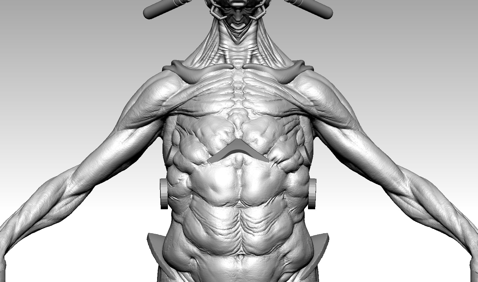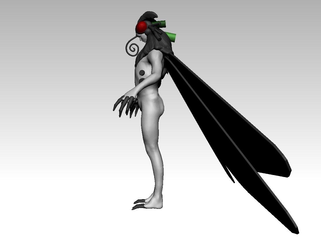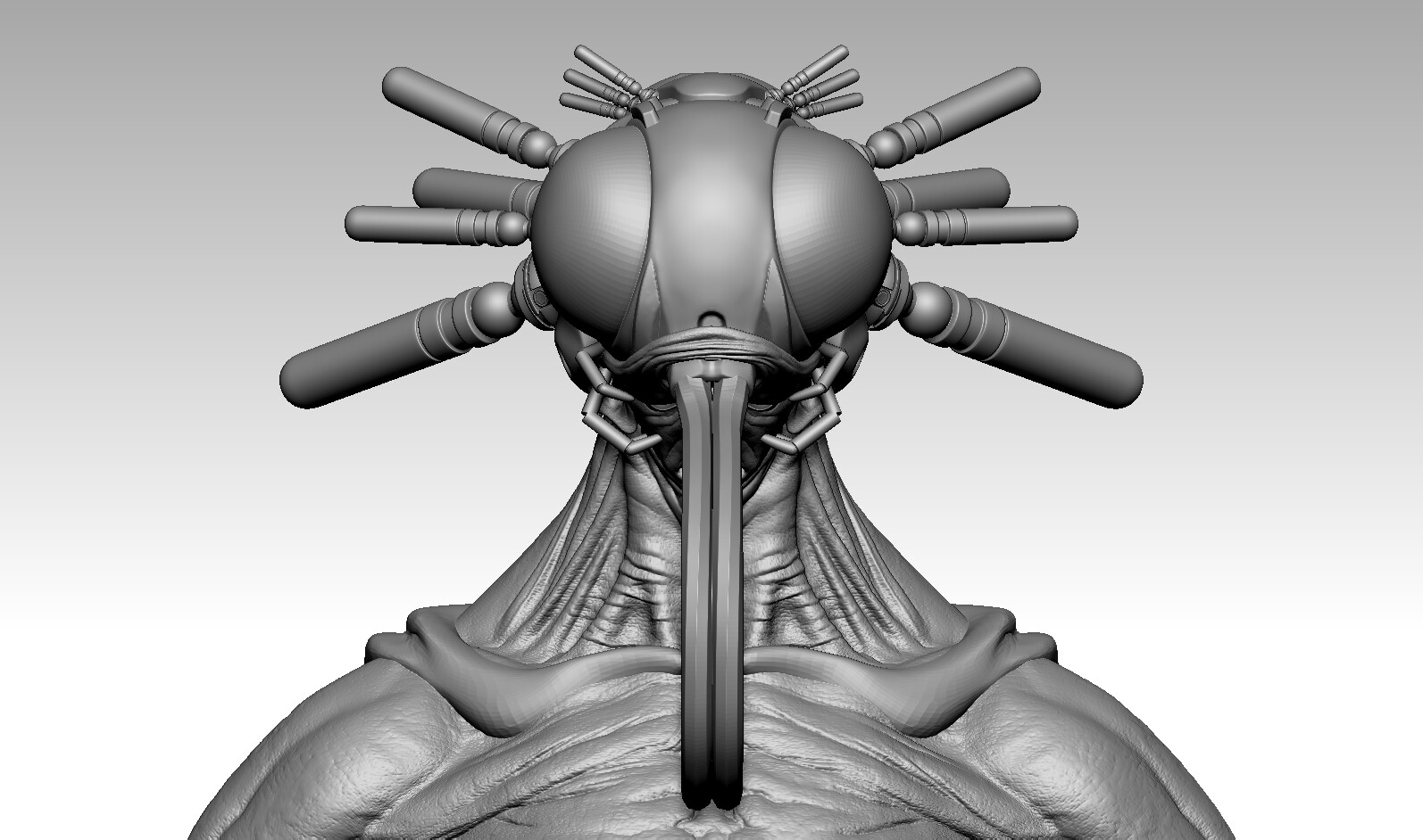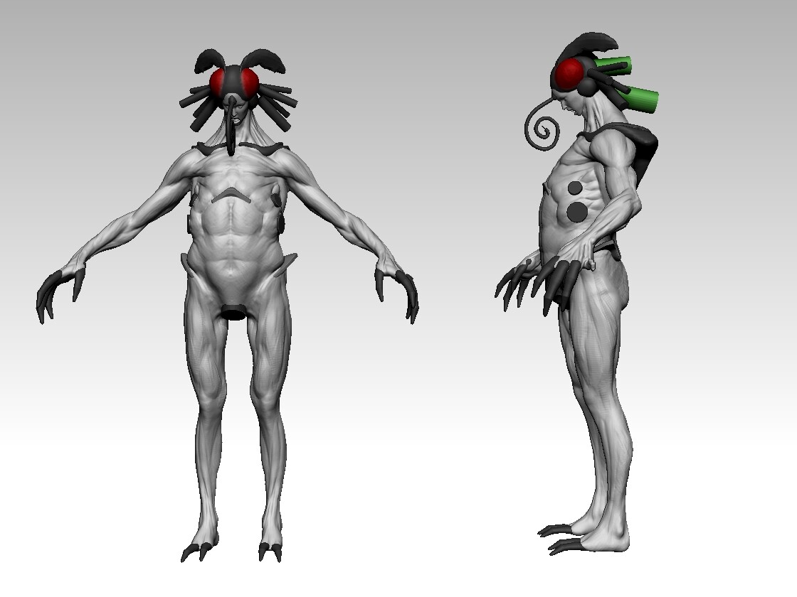 hey, here is my blockout, I wanted to do a slightly simple design since I don’t have much time. Also, I’m trying to keep that scary idea so I will do a deformed body anatomy with mechanical stuff going out of it’s head, fingers, and other body part to show that a mechanical creature is parasitizing this human body from the inside forming that moth like shape.