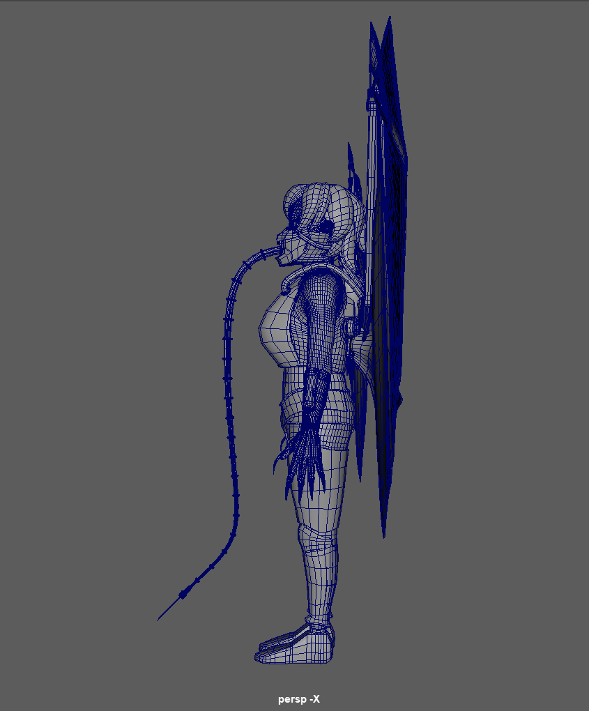 I made a quick rig to help with posing, then once I got the main idea down, I duplicated the mesh and fine-tuned the deformations. I used Procreate to create my sketch, Nomad Sculpt for high-poly detailing, Maya for retopo, rigging, and posing, Instamat, Mari, and Photoshop for the textures, and Marmoset Toolbag to render everything.