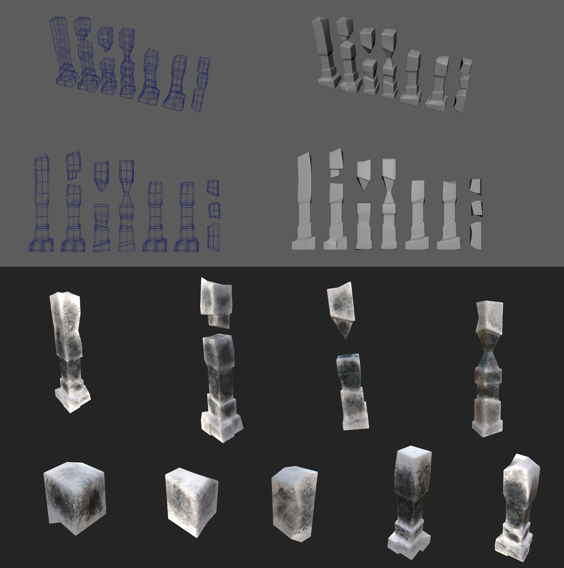 Additionally, I reduced some of the modular assets. Originally I had 7 tall columns and 3 short ones, but after reviewing the composition I decided to streamline the set. The scene now uses 4 tall column variations and 2 short ones, which keeps the environment less cluttered while still maintaining variety.