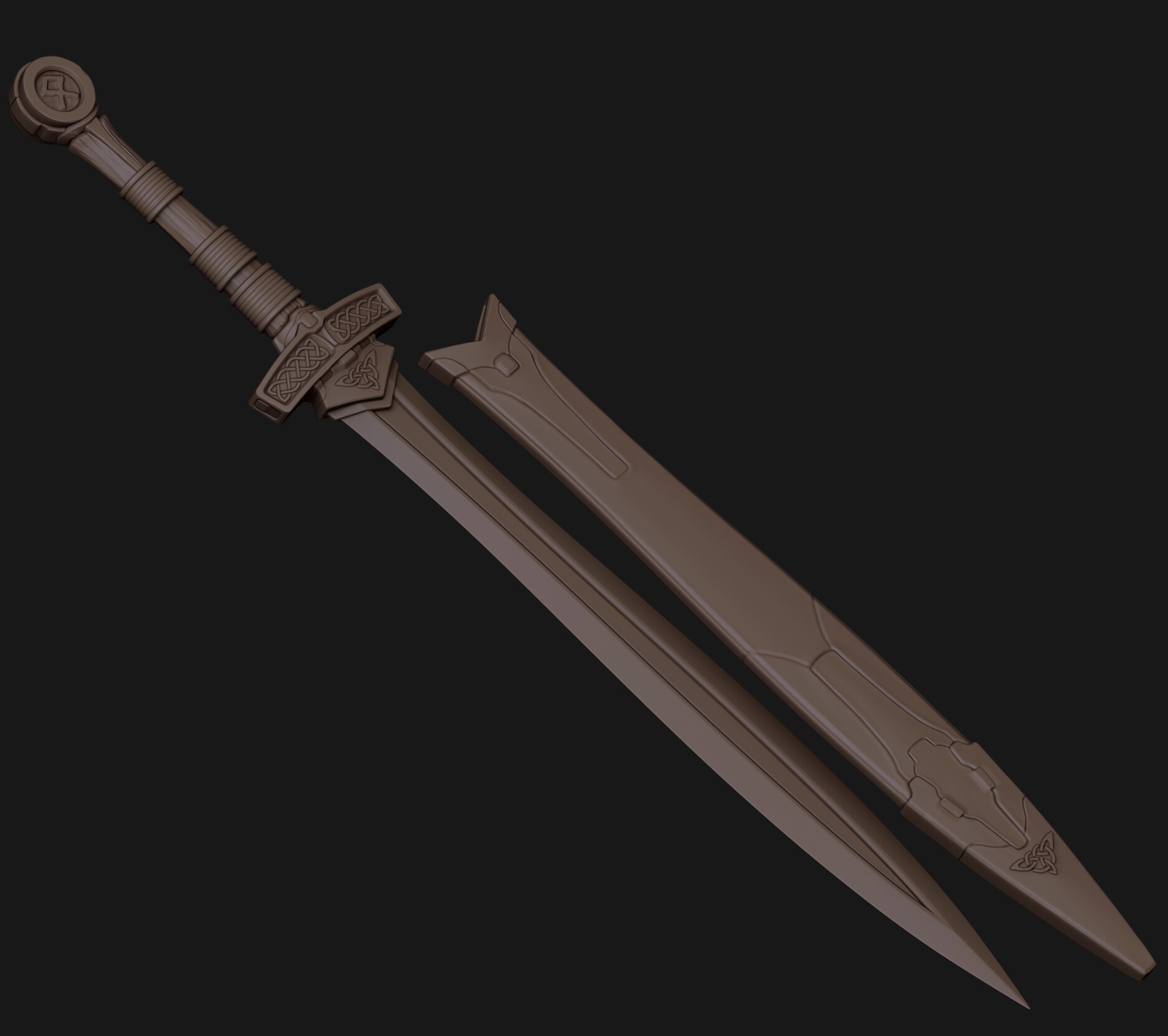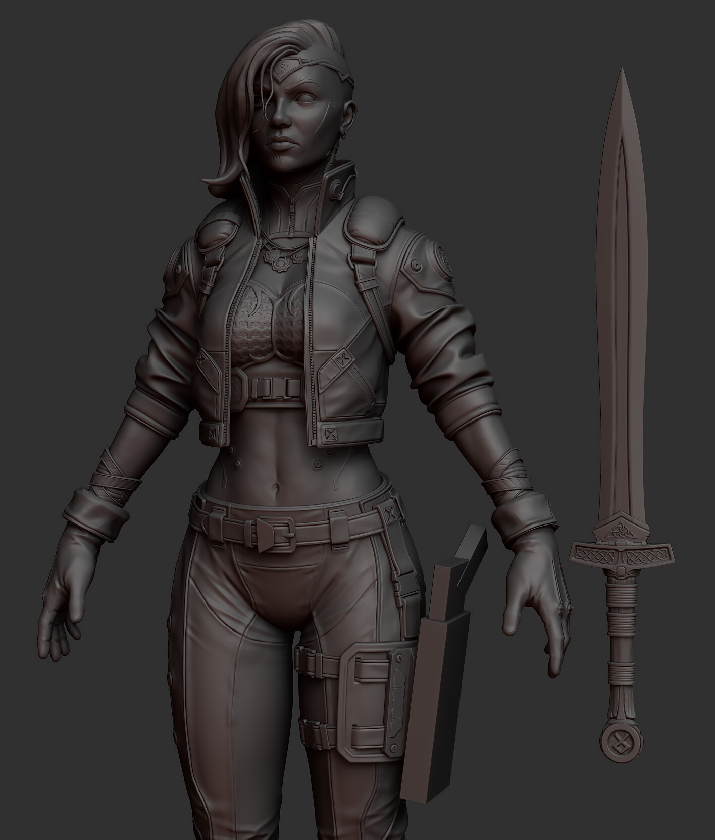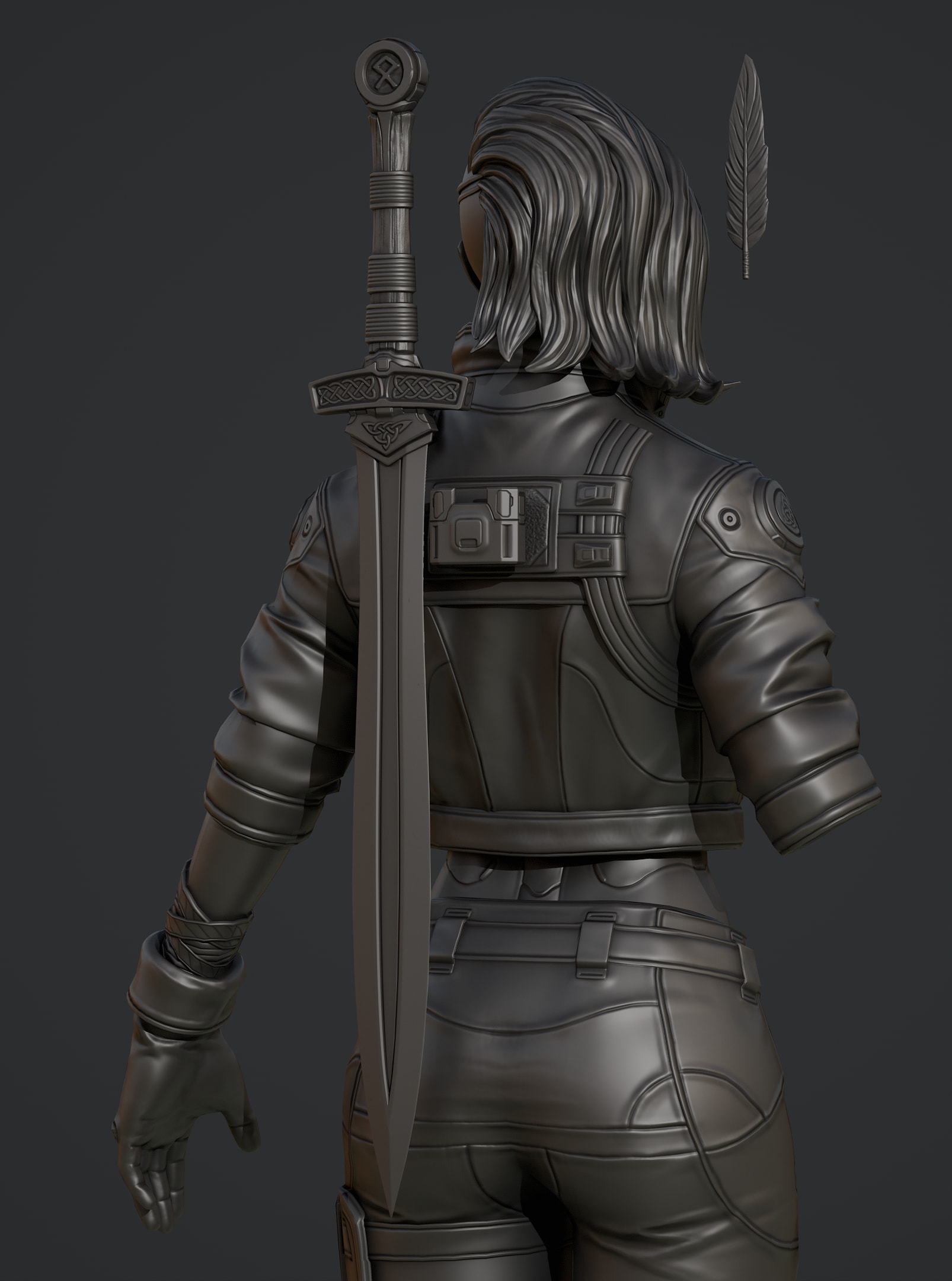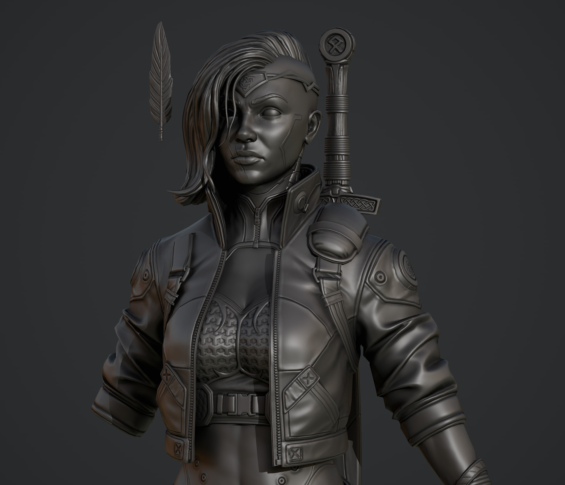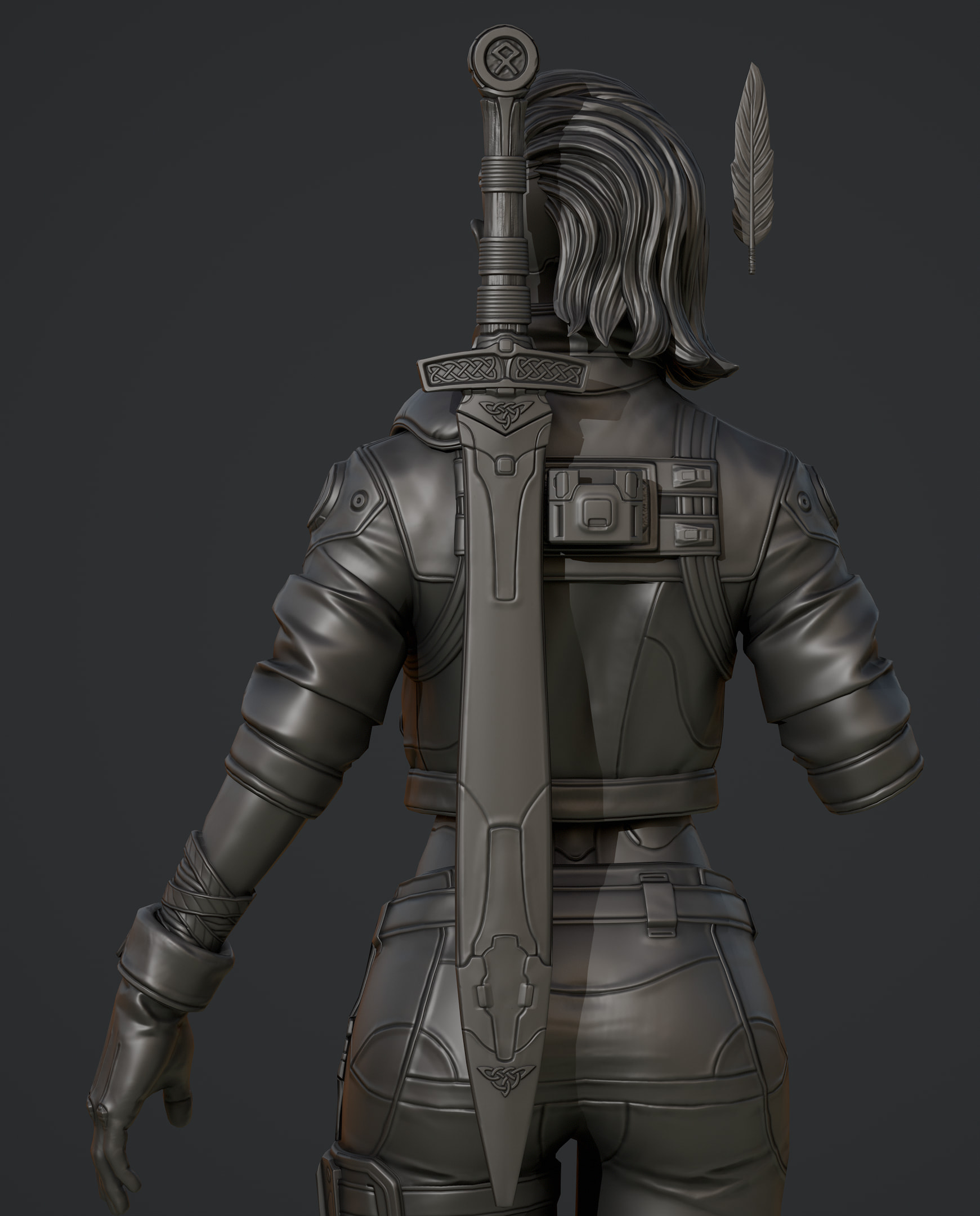 Hey folks, so today I whipped up a sword my character, inspired by some celtic iconography and shapes with some futuristic twists. Gonna get going on a quick sheath for her back and get going on other things and finish up this sculpt.