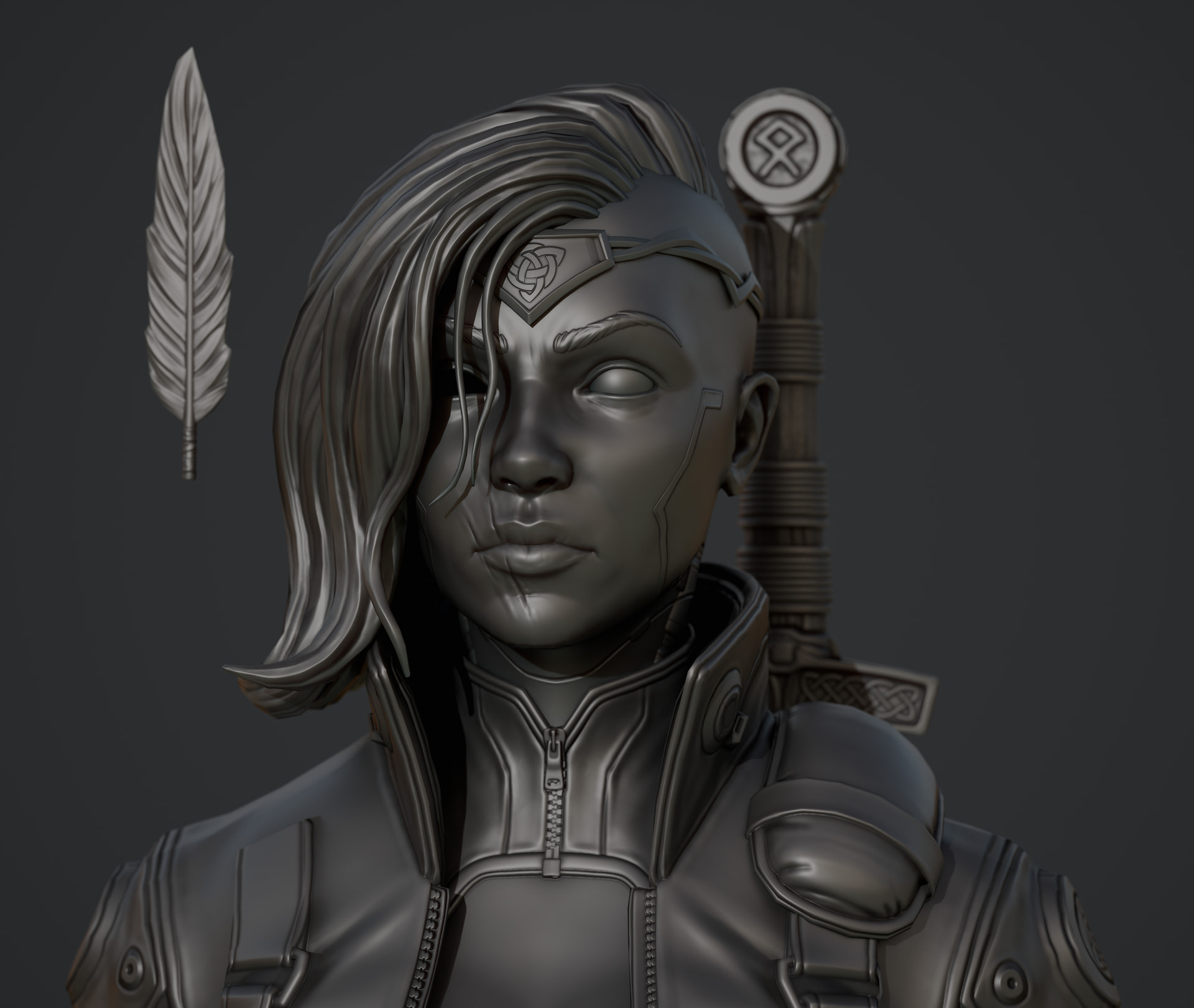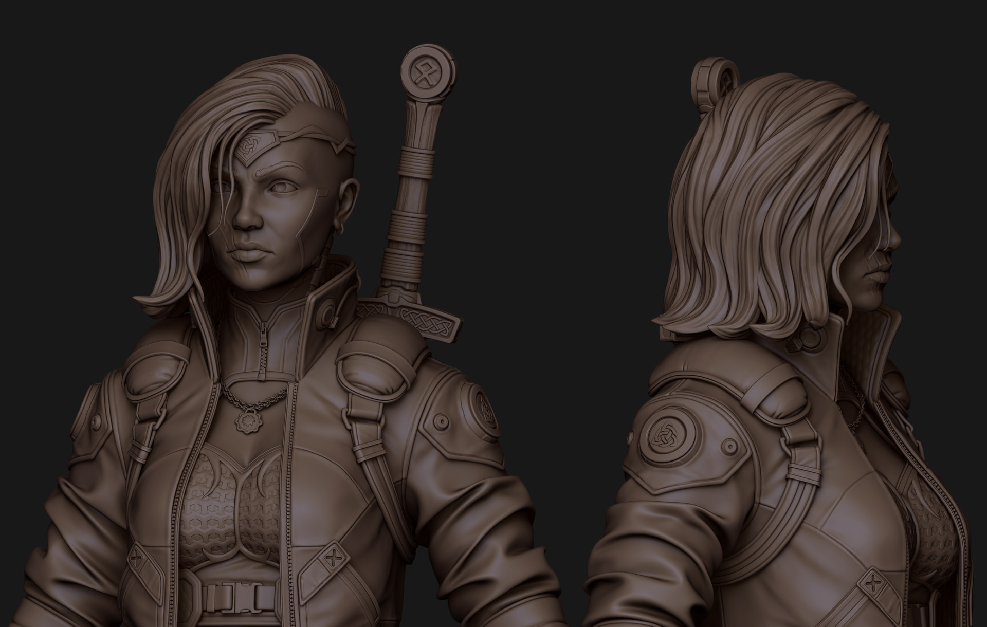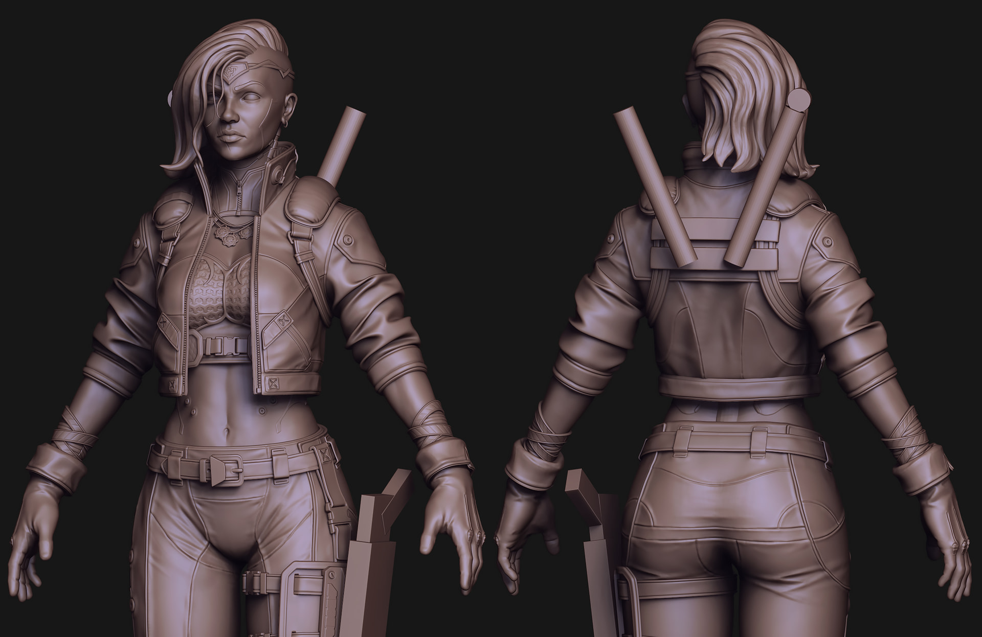 Got back to work on her yesterday, whipped up her gloves, adjusted her hair, tweaked her jacket and some clothing proportions as well. Few more days on the sculpt before I get onto retop.